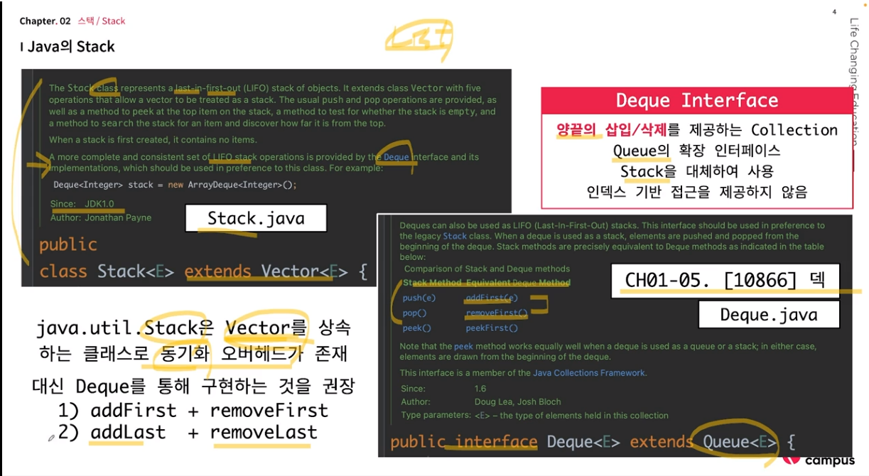 자바 공식문서에 따르면 스택 같은 경우 아주 예전 자료구조인 Vector를 상속해 만든 Stack 보다 Deque를 이용해 stack을 구현하는 것을 권장하고 있다. deque은 양방향에서 삽입 삭제가 가능하기 때문에 스택과 큐로 모두 구현 가능하기 때문이다. 그럼 이 Deque을 활용해서 stack 문제를 풀어보자.