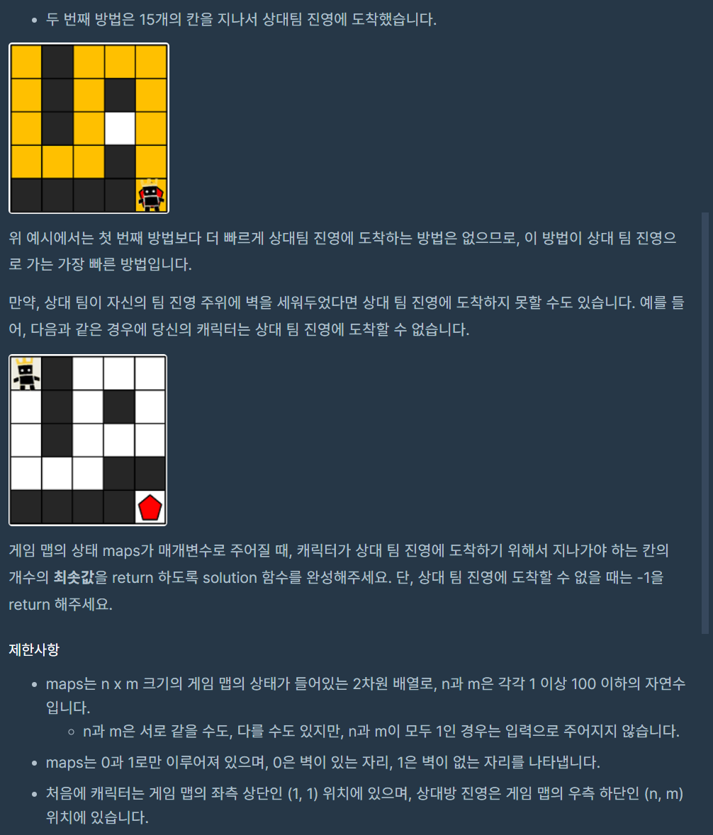 [240330] 알고리즘 리부트 42일차 - 프로그래머스 게임 맵 최단거리 자바 본문