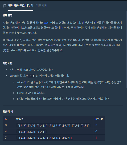 [240402] 알고리즘 리부트 44일차 - 프로그래머스 전력망 둘로 나누기 자바 본문