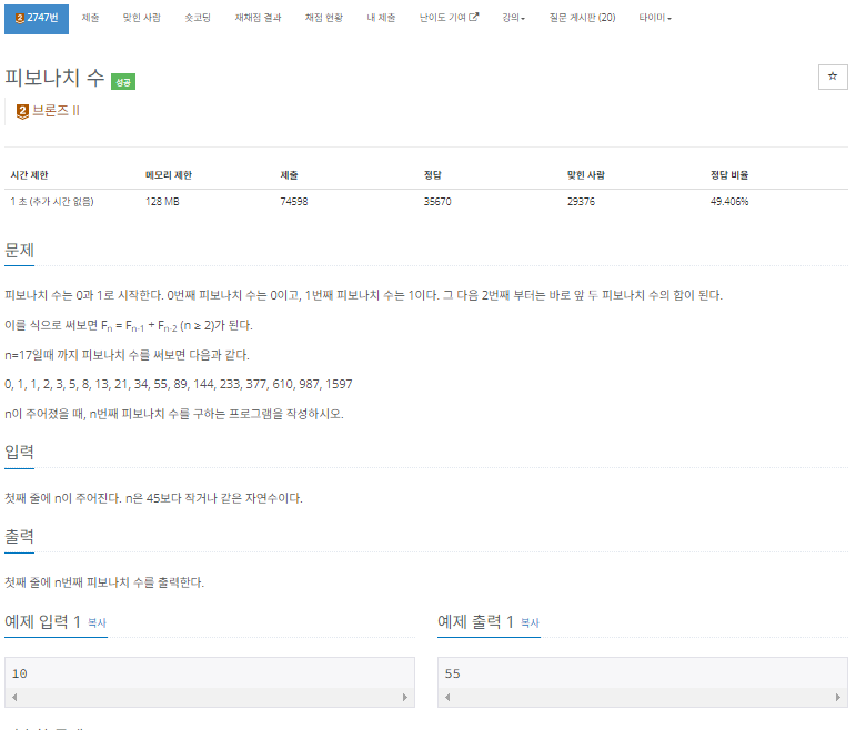 [240420] 알고리즘 리부트 53일차 - 백준 2747 자바 본문