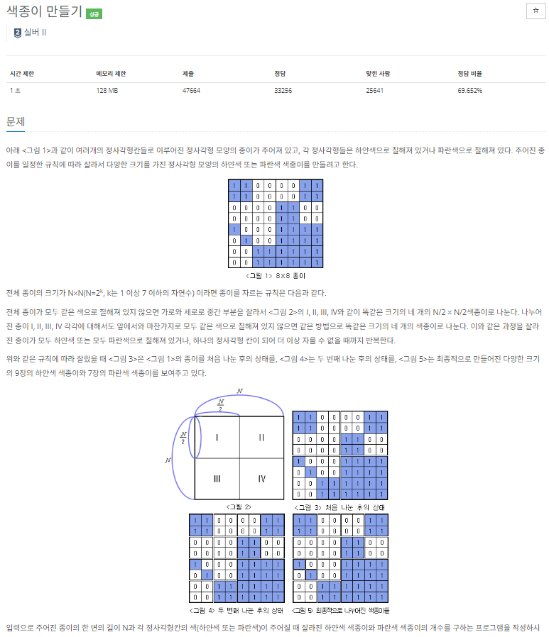 [240528] 알고리즘 리부트 61일차 - 백준 2630 자바 본문