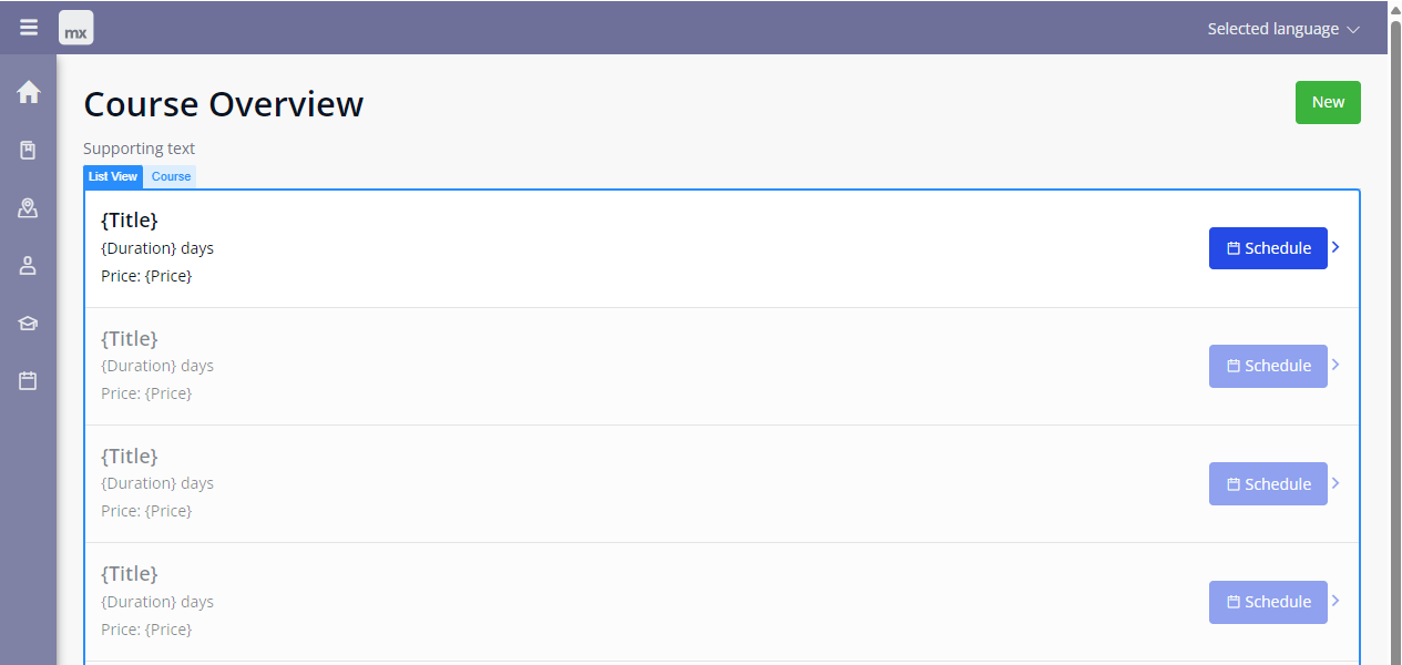 교육 시스템 관리자가 특정 Course에 대해 훈련 과정을 추가하려고 한다. 여러 Course를 list 뷰에 담았고 각 course마다 schedule 버튼을 클릭하면 바로 훈련 과정을 추가하는 로직을 만들고자 한다.