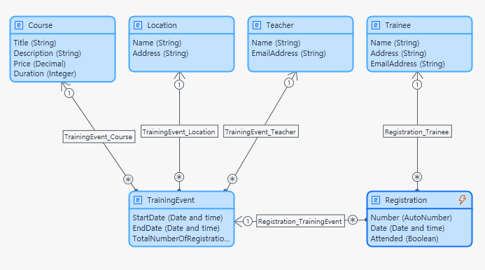 위 이미지는 Registration 엔티티에 객체 이벤트 핸들러를 등록하고자 연 화면이다. 해당 객체를 두번 클릭하면 다음과 같이 엔티티를 설정할 수 있는 화면이 나오고 우리가 일반적으로 사용했던 Attribute 탭이 아닌 Event Handlers 탭으로 이동해서 등록 가능하다.