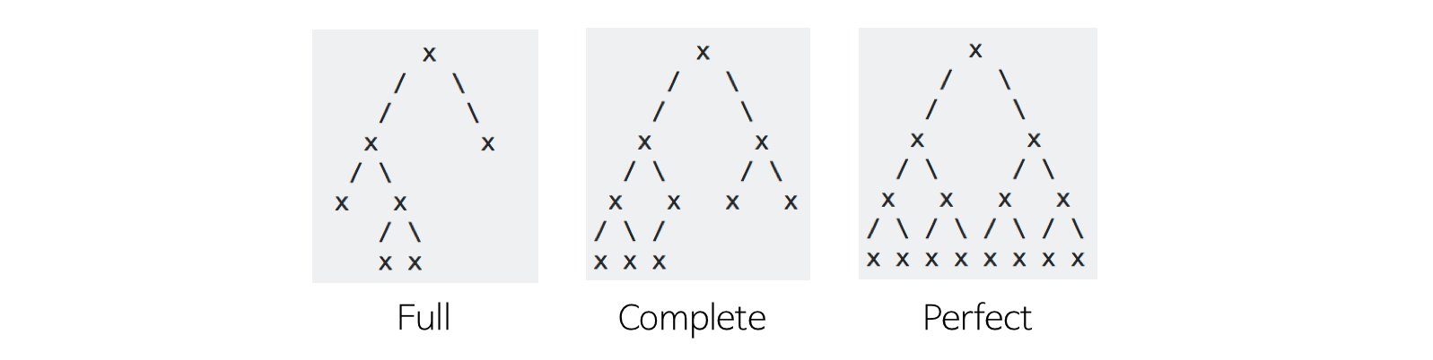 | 노드는 왼쪽에서 오른쪽으로 채워져야 함 | 노드 수: 2^(k-1) => k: 트리 높이 모든 내부노드가 2개의 자식 노드를 가짐 모든 말단 노드가 동일한 깊이, 레벨 가짐 |