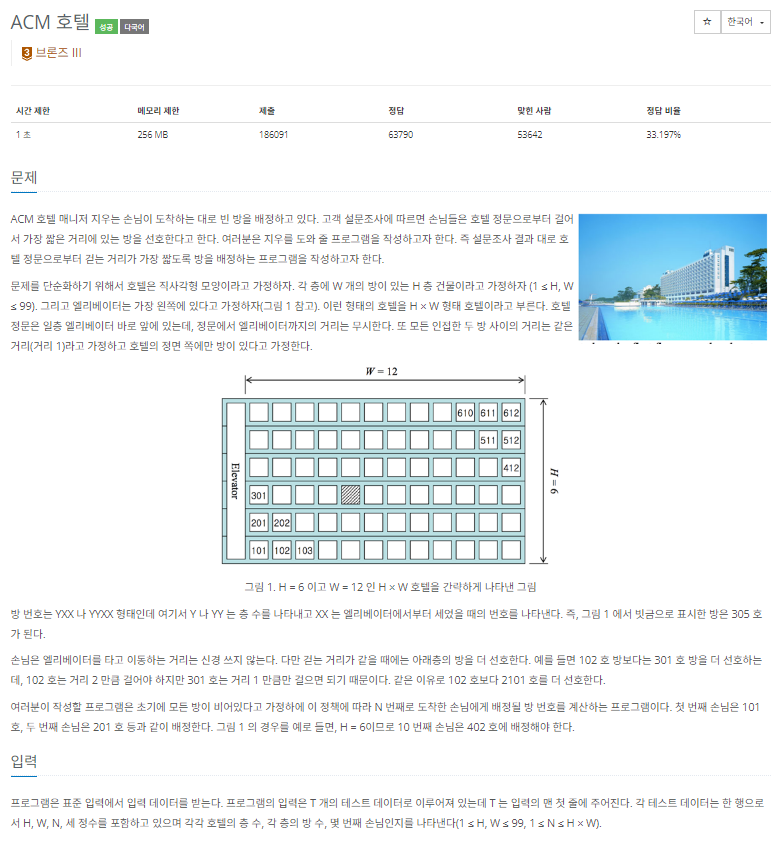 - 백준 10250 ACM호텔