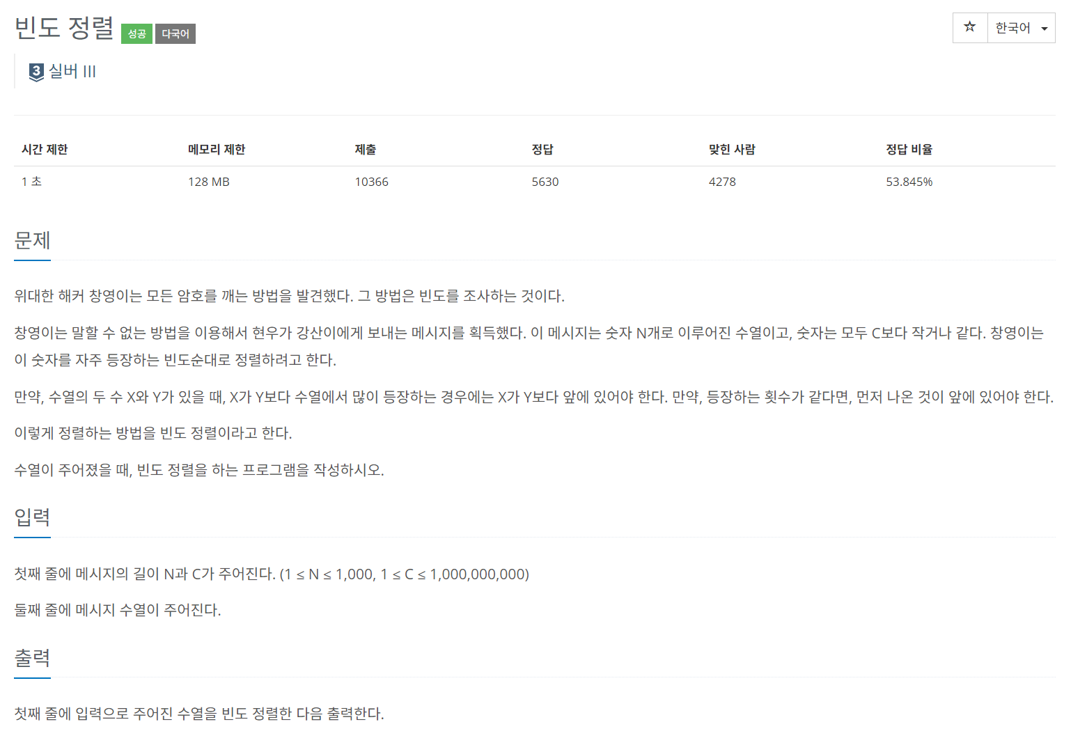 [240226] 알고리즘 리부트 17일차 - 백준 2910 자바