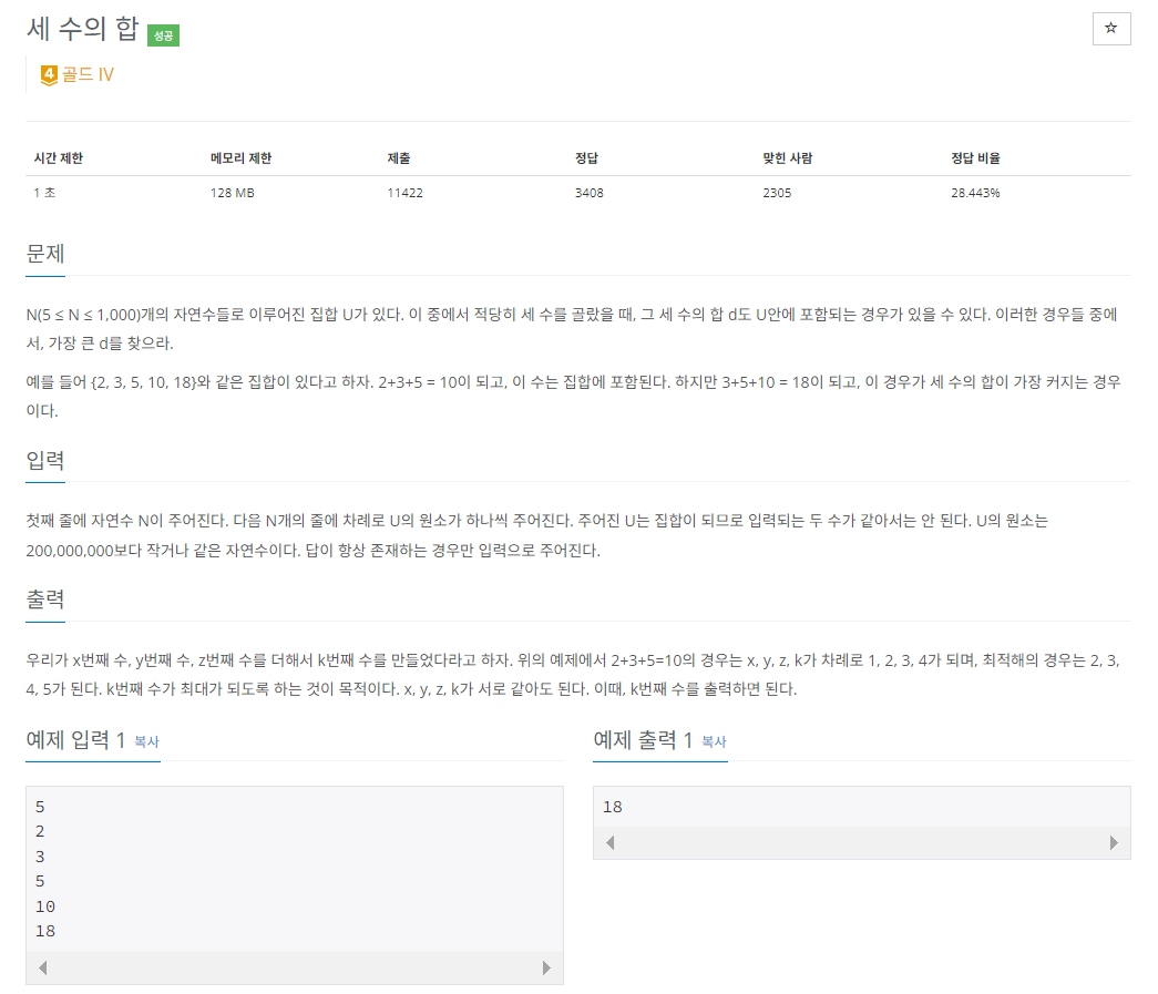 - 백준 2295 세 수의 합