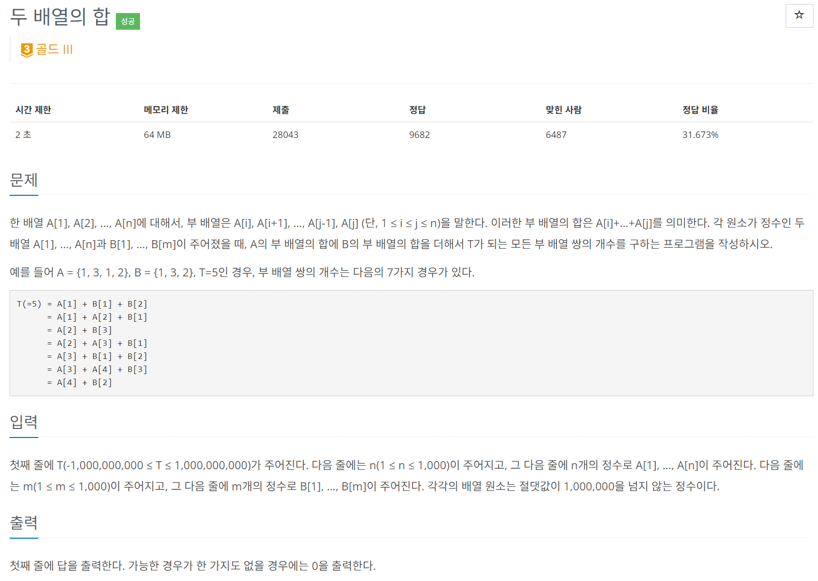 [240310] 알고리즘 리부트 28일차 - 백준 2143 자바 본문